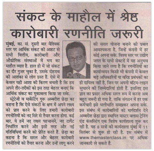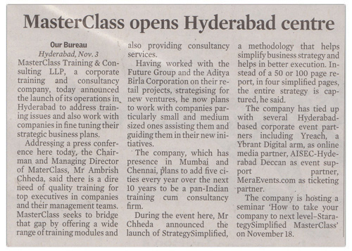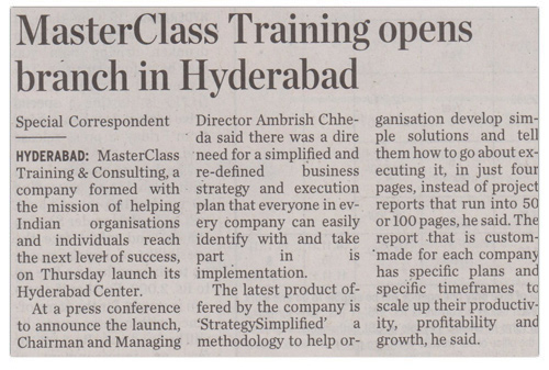 Core Purpose & Mission of MasterClassŪ is 'Nation Building'; by contributing, in our own way, to the economic development of our country by helping tens of thousands of Indian Companies and millions of individuals reach the next level of success. We do this by providing business coaching & mentoring services, execution consulting services, simplified training programs and tools, through various mediums across the country, through professionals with practical industry experience.